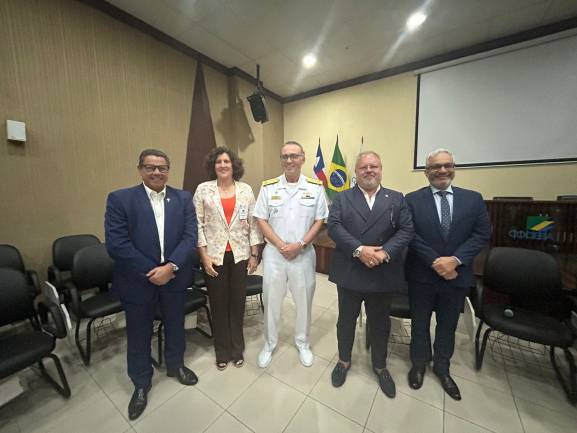 Marcelo Sacramento, Diretor-Geral da Maqfiltros/Brasil, eleito Diretor Secretário do Conselho de administração do Cluster, Leilane Loureiro, Diretora-Geral da Bahia Marina eleita Vice-Presidente do Conselho de administração do Cluster, Almirante Cambra, autoridade marítima comandante do II Distrito Naval, Antônio Gobbo, autoridade portuária, Presidente da CODEBA, eleito Presidente do Cluster Naval da Bahia e Paulo Cezar, Que assumiu a Diretoria executiva do Cluster.