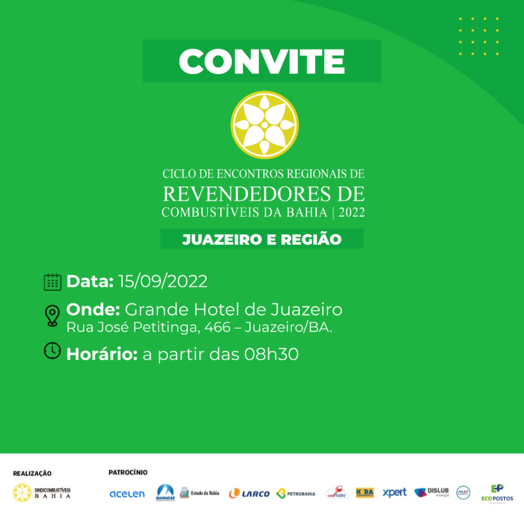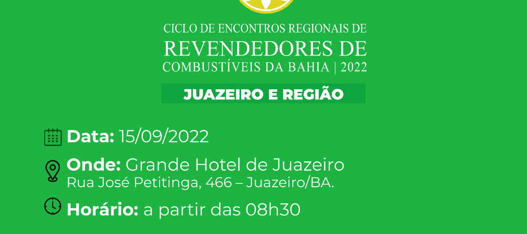 Nesta quinta-feira (15), o Grande Hotel de Juazeiro irá sediar mais um evento do Ciclo de Encontros Regionais de Revendedores de Combustíveis da Bahia – 2022.