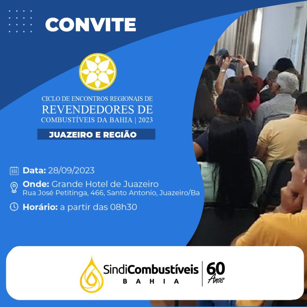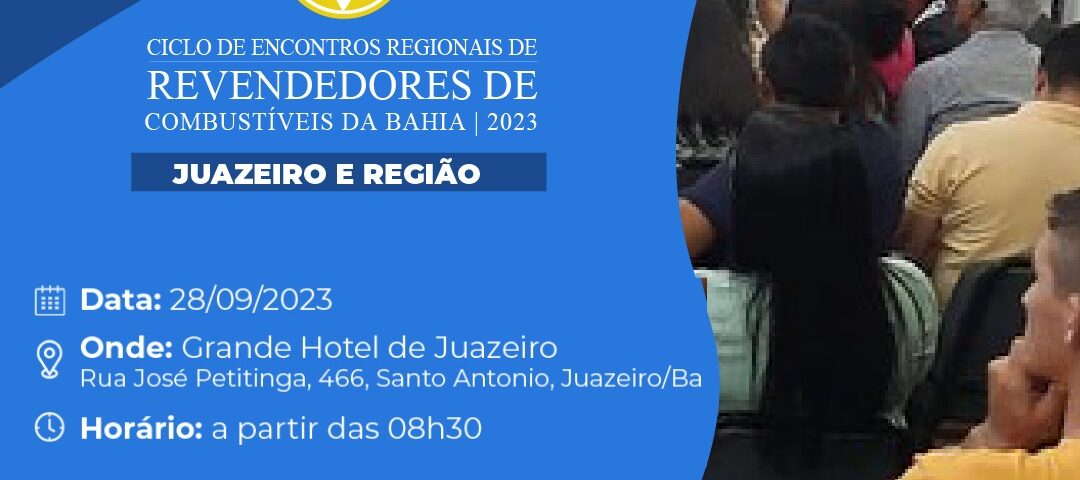 O Encontro de Juazeiro e Região, será no dia 28 de setembro, no Auditório do Grande Hotel de Juazeiro, a partir das 8:30 horas. Faz parte da programação do Ciclo de Encontros Regionais de Revendedores da Bahia – 2023.