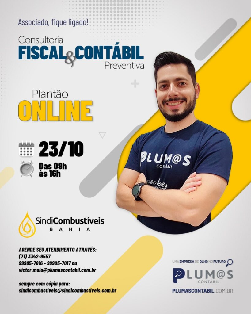 Será realizado através da parceira do Sindicombustíveis Bahia com a Plumas Contábil, empresa que tem 40 anos de experiência no mercado de combustíveis e é referência no setor!