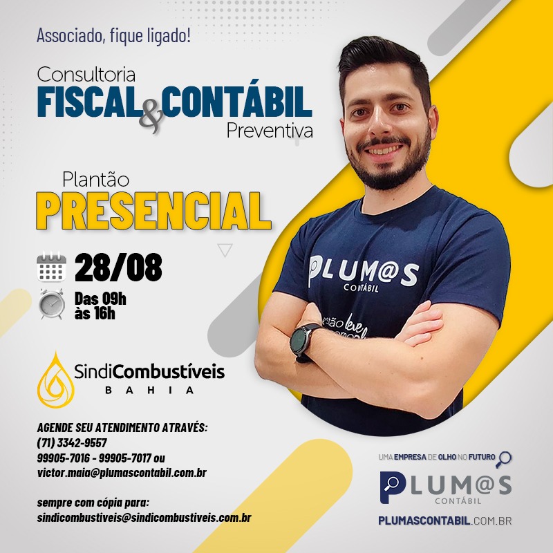 Será realizado através da parceira do Sindicombustíveis Bahia com a Plumas Contábil, empresa que tem 40 anos de experiência no mercado de combustíveis e é referência no setor!